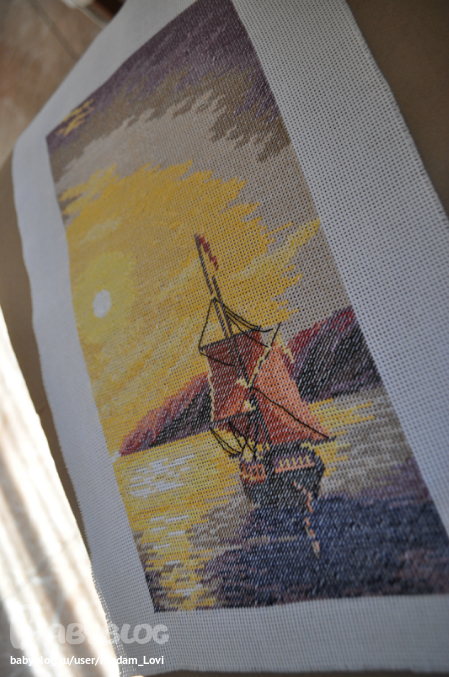 Родные тоже настаивают на оформлении, просто она не очень большая и пары к ней нет, будет одиноко висеть на стене...а морскую тематику вышивать для меня очень нудно : небо, вода и т.д