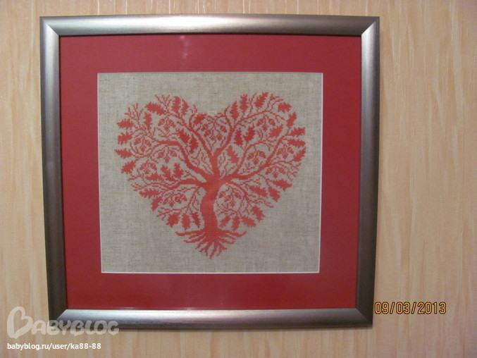 Вышивальные процессыначинала вышивать "Сердце" с http://www.babyblog.ru/community/post/rukodelie/1816861.на 14 февраля немного не успела, зато оформила как раз на 8 марта.и вот что в итоге получилось.Дальше много фото.