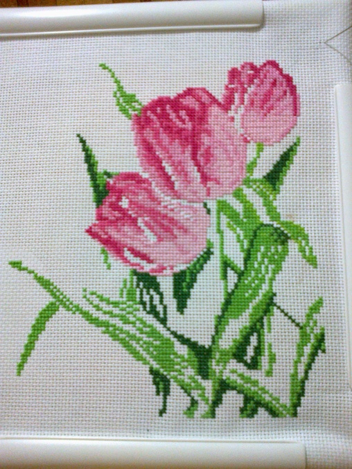три начатых тюльпана слева придется распускать( накосячила со стеблем и произошло смещение на 8 клеток((( к ДР бабушки уже точно не успею, поэтому уходят в долгострой, а я возвращаюсь к денежному дереву от панны..
