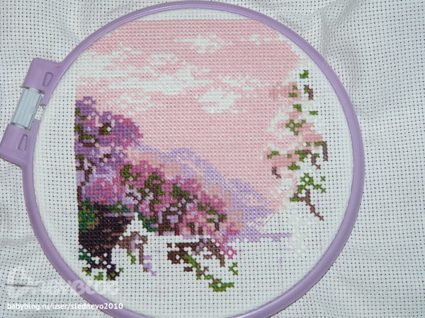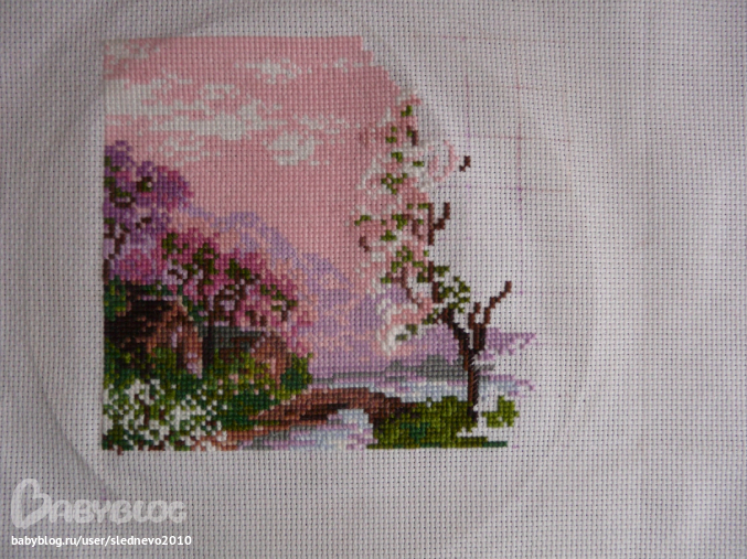 На время пейзаж откладываю,т.к. сегодня уехали на несколько дней к моим родителям(некогда будет),а потом надо вышить подарок свекрови на ДР,пока остановилась на этом