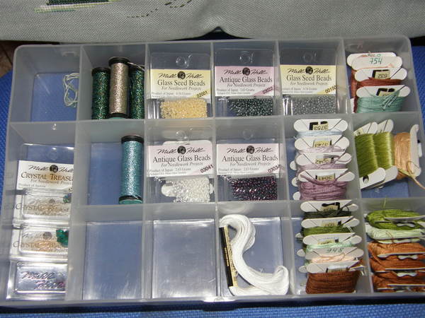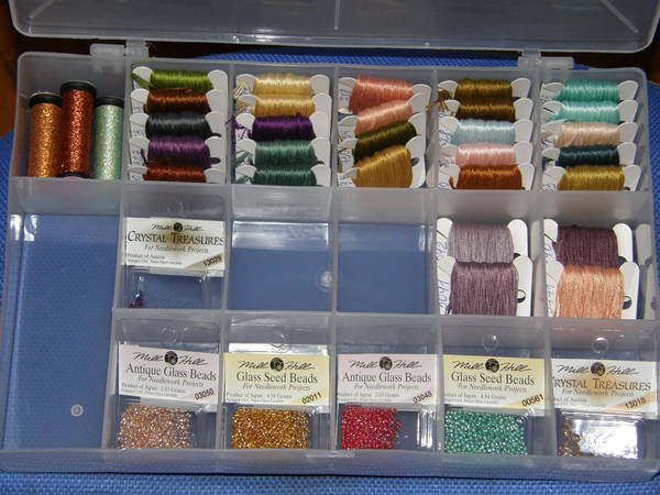 и мешочек с остатками и целыми коробочками бисера милл-хилл и крейником..