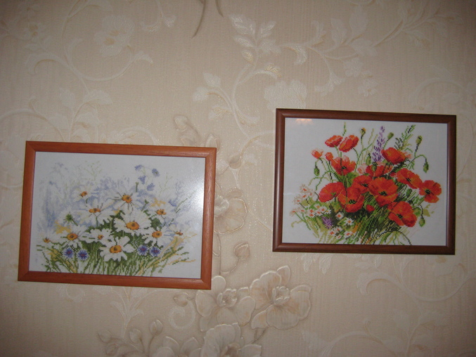 Ромашки подарила маме, а маки вышила в пару к ним. Показалось, что они друг к другу подходят.