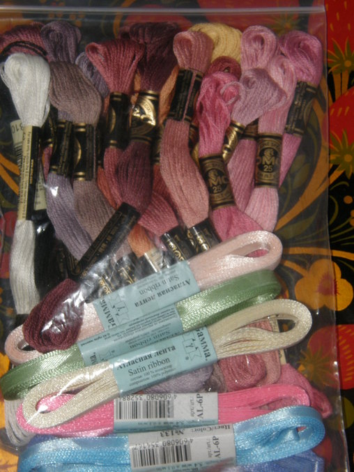 а тут....пакетик с мотками ДМС и ленточками.. они как у меня первые высыпались из мешка-я так дар речи и потеряла))))))