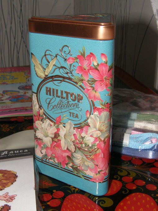 и коробочка с чаем...как я люблю эти коробочки... а она еще и треугольная)).а внутри чай зеленый с жасмином..ммм...