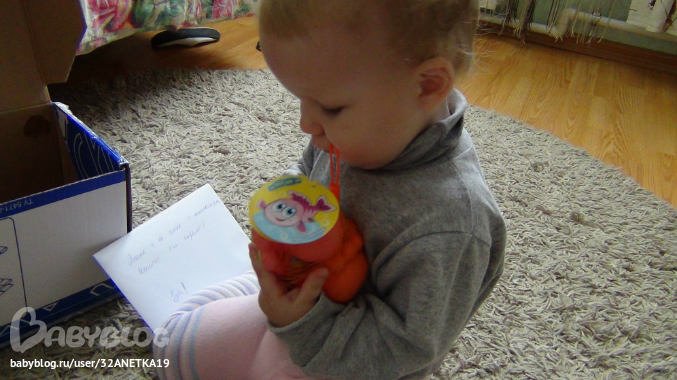 Это Вероничка добралась до своего подарочка и уже активно с ним играет игрушки такие забавные