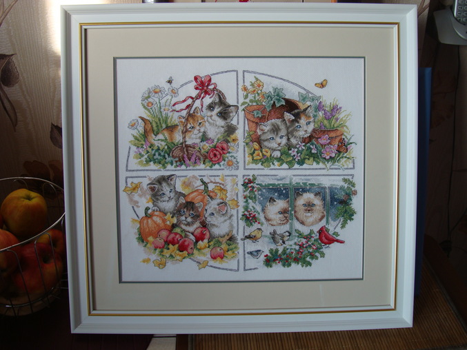Вышивка крестомХвастаюсь своими оформленными работами)) Очень много времени провела в багетке, думая над оформлением и , на мой взглая не зря) Получилось по-моему здорово, особенно котятки.