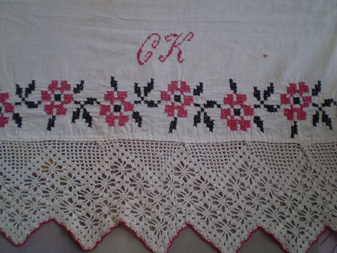 . Прабабушка вышивала до замужества себе в приданное целый набор. Целиком он , конечно не сохранился, но кое-что осталось: