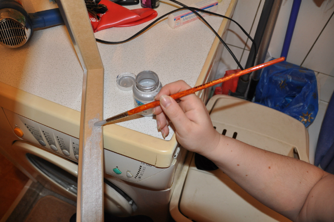 3. Покраска внутренней части рамы себеряной акриловой краской в 2 слоя.