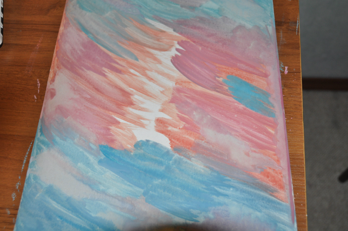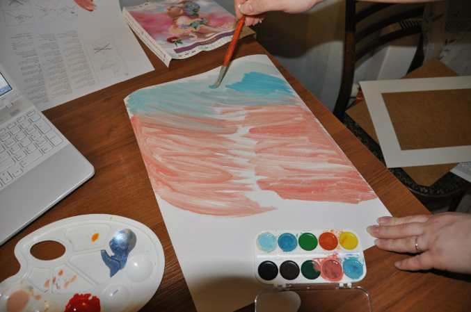 4.покраска простого картона в примерную цветовую гамму акварелью.