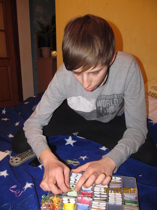 я тут недавно вк наткнулась на парня,он тааак клево вышивает,скупает почти все наборы дима..и знает обо всем не хуже девушек)