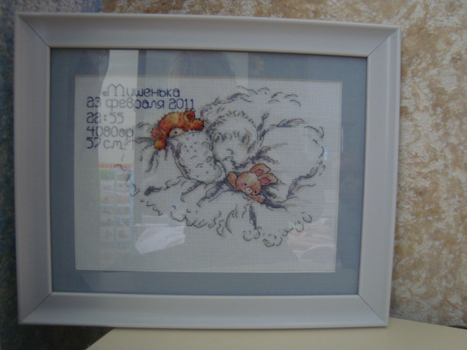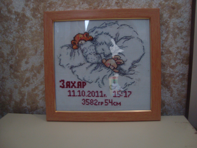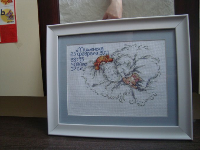 Эту метрику вышила буквально за 2 дня в подарок племяннику мужа.