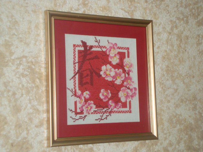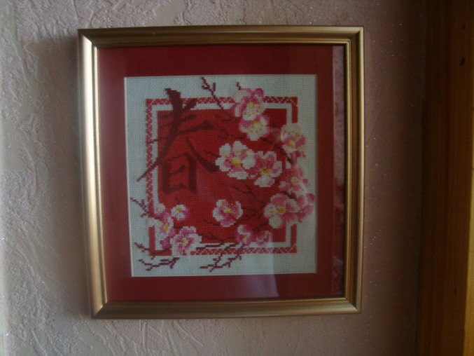 Риолис Времена года Весна Иероглифы. Вышивалась в рамках конкурса "Сюрприз"