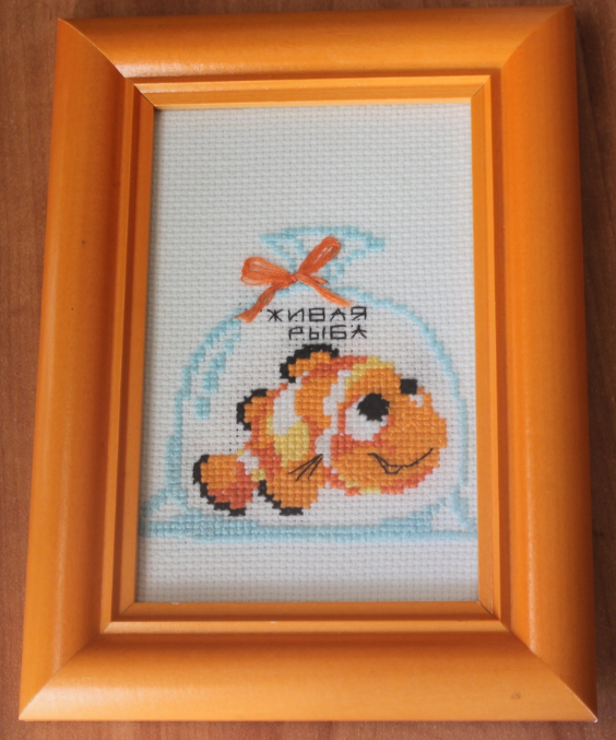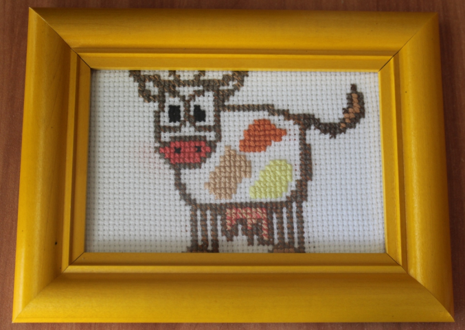 Вышивка крестомРыба - это моя самая первая вышивка, вышивала 6 лет назад целую неделю))) Коровка вышилась из остаток ниток , более большой работы (позже выложу). Схему нашла в интернете, слегка под себя изменила и за несколько часов коровка была готова. Я умудрилась при оформлении тогда обрезать канву, сейчас мне смешно, но натягивать было тяжко сейчас.