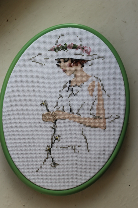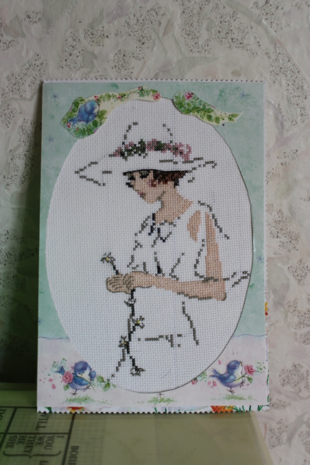 Девушка с цветком вышилась недавно тоже в подарок. Что с ней сделала почта, многие в курсе))))