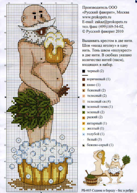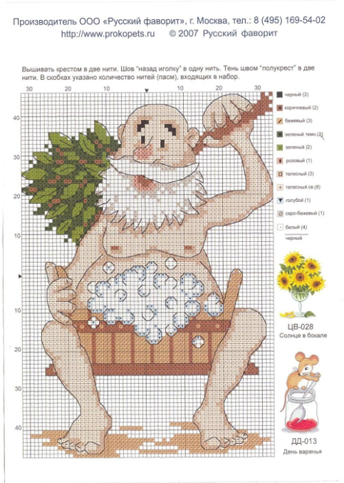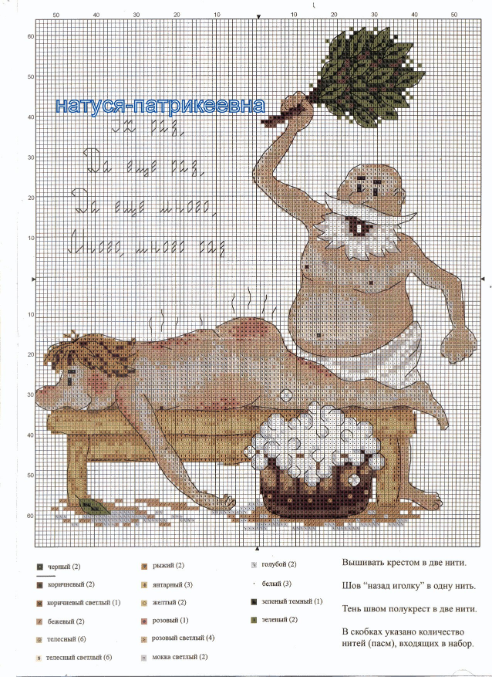 спасибо, в закладки!! Я как раз заказала один из этих наборов - а не прислали! Теперь вышью по схеме да и всё))) Свёкру подарить в баню хотела - заядлый банщик)