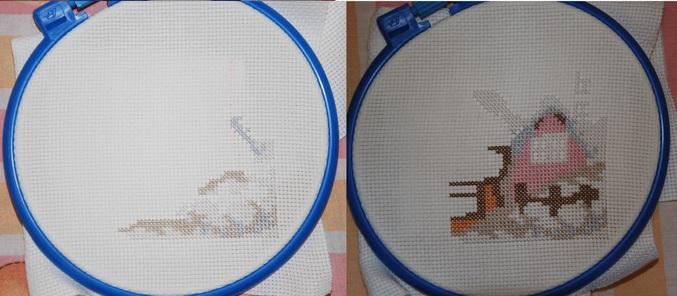 Как я понимаю, только что много вышила, посчитала - ошиблась на 3 клеточки!!! Распустила, вечер почти в пустую, но ничего, внимательнее буду или в следующий раз подружусь с маркером)))