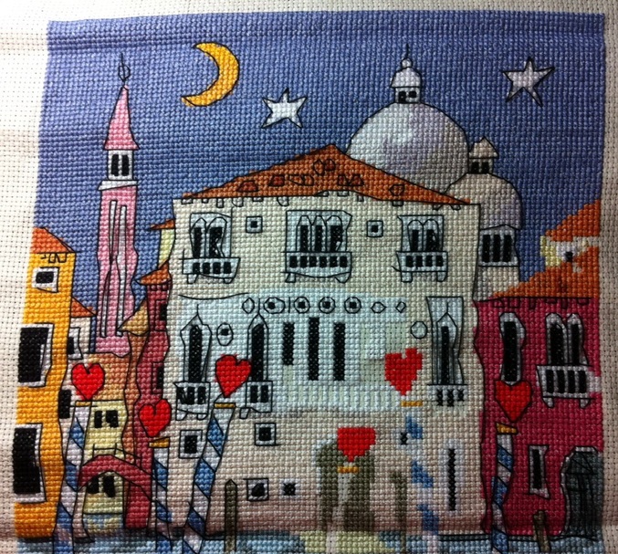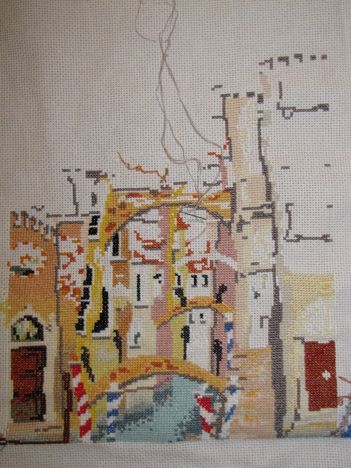 всем привет! понедельникденьтяжелый - это про меня. повышивать сегодня не удалось. да и вообще всю неделю какие-то дела были, это отчет уже полдня пишу, постоянно что-то отвлекает. Венеция моя продвинулась вот на сколько: