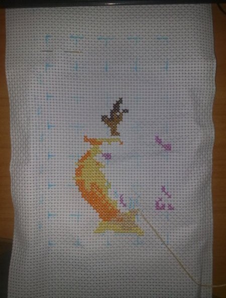 Я вышивала всего два дня,в пятницу мне только нитки подружка привезла,трясло без вышивка как нарика