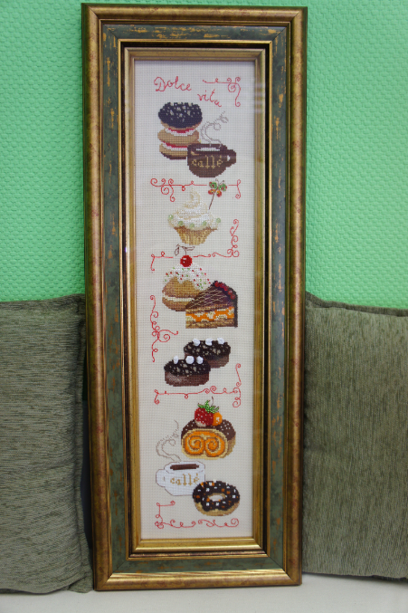 Дольче Вита будет висеть в офисе, взяла помпезную такую двойную рамку с зеленой патиной, очень подходит к нашему дивану ))))))) Но фото очень искажает общий цвет.
