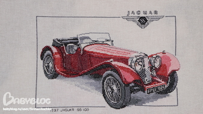 Второй работой стал ретро-автомобиль от Heritage - Jaguar SS 100 1937 года выпуска. Большим плюсом этого набора считаю канву-равномерку. Понравился бэк, особенно спицы на колёсах!!!