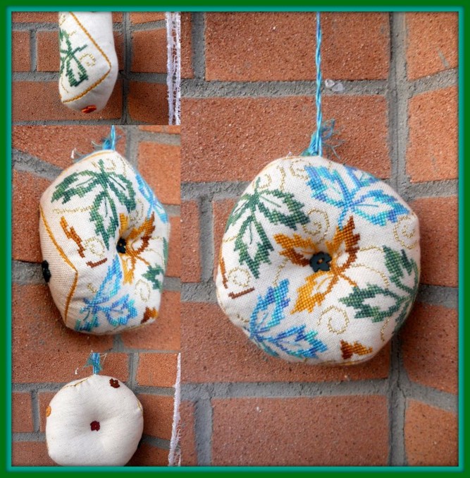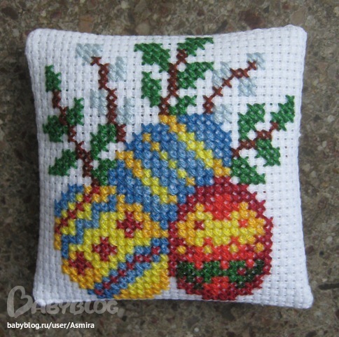 Девочки, приветик!!! А вот и я))) Планировала вышить яичко, но как всегда потеряла канву... В итоге взяла мотив, вышитый еще в декабре-январе и оформила в виде так любимого мною пинкипа. Самое смешное - пока искала тесёмку или ленту для петельки - нашла канву для яичек...)))) Видимо мой цветочек ОЧЕНЬ хотел быть завершенным)))