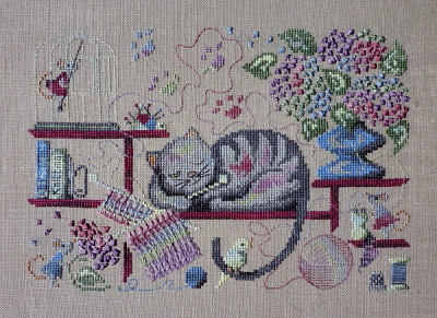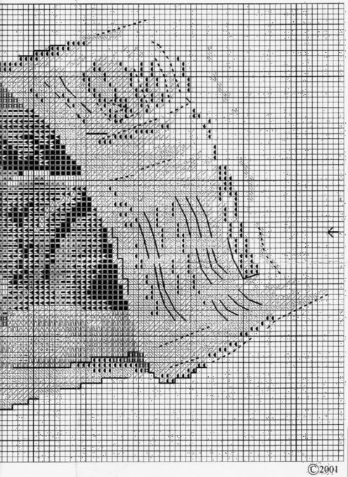 Мне кажется он какой то бездомный, если ещё на щаднем фоне кирпичную стену вышить ... так вообще бродяга будет(