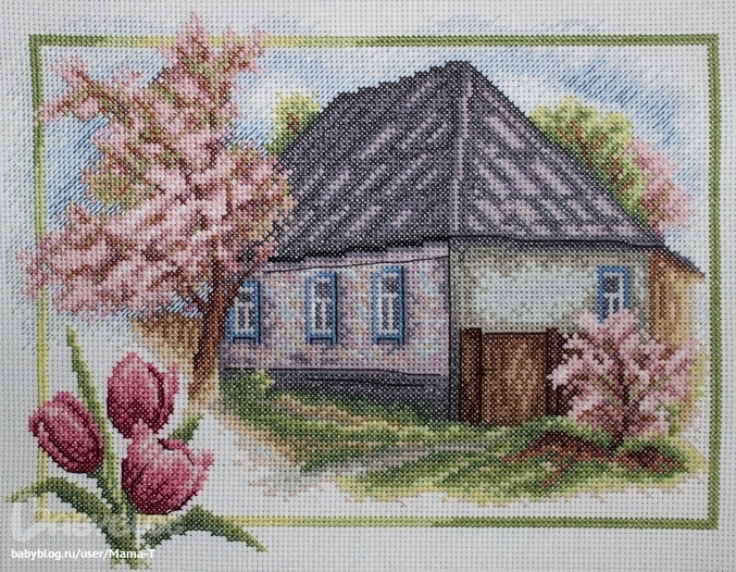 Вышивка крестомВсем привет. Вот и закончена вторая вышивка из серии "Времена года в деревне" от "Панна" - "Весна в деревне". Как то тяжеловато она у меня шла. "Зима в деревне" полегче вышивалась. 42 цвета, огромное количество одиночных и двойных крестиков, знаковая схема, в которой на фоне травы и деревьев, в глазах просто рябило, от количества цветов и переходов. Но, я сделала это!!! Я - герой, геройский:)