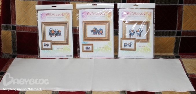 Так вот, все началось с того, что на осенней "Формуле рукоделия"2012, или зимней... я уж и не помню, я влюбилась в серию воробьев "Пиксар"от "Алисены", но в наличии не было всех трех наборов серии, а покупать в разнобой не хотелось, но на весенней "Формуле рукоделия", я все-таки восполнила свой пробел влюбленности. Каково же было удивление работников фирменного стенда, когда на их вопрос - как планируете вышивать и оформлять, я сказала, что разлучать этих чудиков не планирую, буду вышивать на едином куске канвы, при чем на равномерке.