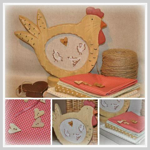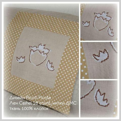 Дизайн - также Picoti Picota, «Un week-end a la champagne», но неполный, в оригинале возле цыпляток стоит курочка, но у меня она не поместилась в рамку, поэтому без нее. Равномерка Floba, 32 count, нитки DMC. Вышила я цыпляток и показалось мне, что как-то пустовато, так появилась деревянная пуговка-сердечко, мне кажется, она сюда вполне подходит. Фотографировала курочку вместе с моими новыми тканюшками-канвушками)