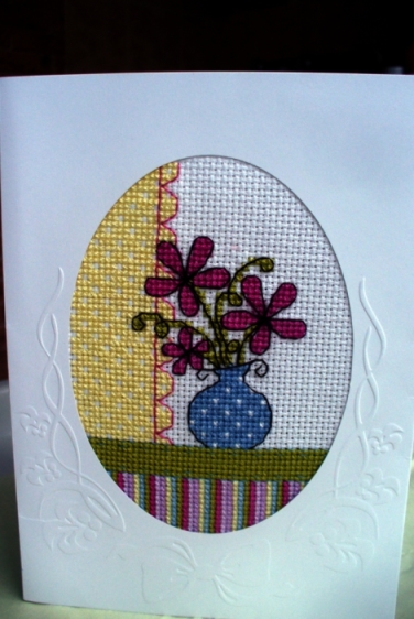 . По-моему, канва 14 слишком крупная для открыток... 16-я смотрелась бы изящнее. И к этому дизайну подходит больше прямоугольное паспарту.. Согласны?
