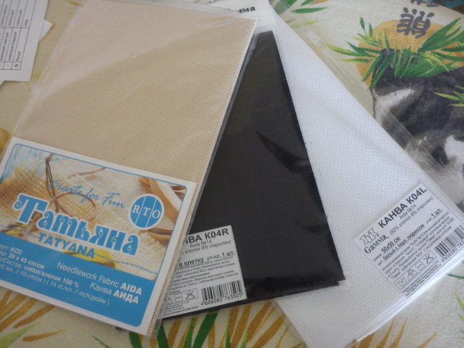 3 отреза канвы: Татьяна бежевая 39*45, Гамма черная 30*40 и белая с люрексом 50*50