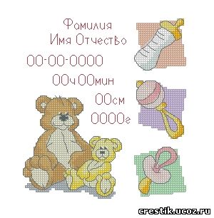 Схемы для вышивкиДевочки, я решила сделать подарок одной ББшке - у нее прекрасный сынок и она скоро станет мамой чудесной доченьки. Помогите, пожалуйста со схемками метрик: