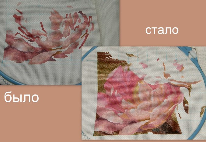 Привет, девочки-подружньки!!! Жаль, что несём такие потери в начале ВД!!! Очень жаль!!! Наташа и Валерия, приветствую вас, приятно, что вы с нами теперь!!! Я на этой неделе свою задачу выполнила, теперь у меня ровно половина машины!!! Спешить не буду, вышиваю потихоньку!!! Тише едешь - дальше будешь, как говорится!!! Слева - было, справа - стало!!!