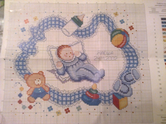 Всем привет! Простите за опоздание, только интернет появился. Доченька выздоровела, но в сад пока наверное не поведу. В субооту наш папа покрестил девочку) так что у нас еще одна доченька появилась) Вышивала мало.