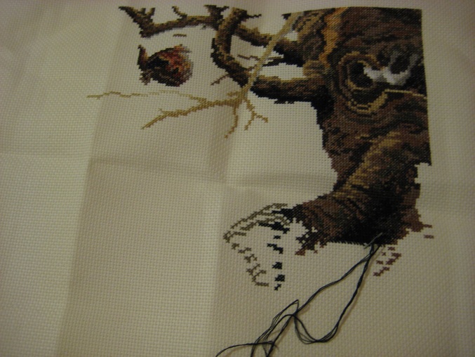 На эту неделю ставлю себе план - вышить горшочек и половину ствола. И клятвенно обещаю его выполнить! И всё-таки ВД очень стимулирует. Если бы не игра, я бы вообще за неделю ни разу бы не присела за вышивку.