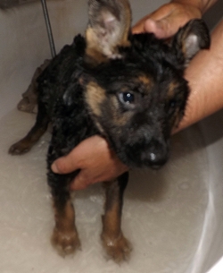 А про собаку которая живет у родителе хочу рассказать подробнее. Как то утром собираясь с вещами в роддом, я услышала что на лестничной площадке кто-то плачет. Выхожу, а там маленький черненький комочек сидит скулит. так жалко стало, я ее запустила в квартиру, позвонила родителям уговорила взять обещала что выростит она наверное небольшая. Передумала в этом день идти в роддом, ждала мужа чтобы отвезти ее на пмж. А собачка не оправдала наши ожидани и оказалась пароды рижеснауцер.