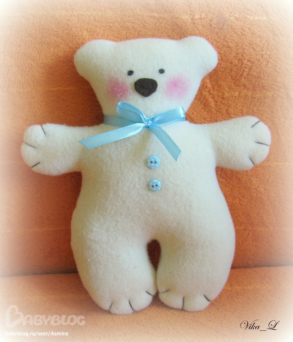 - вот таким полярным тильдо-медведем (сейчас он на реализации в магазине, поэтому не сфоткала вместе, но с удовольствием продублирую такого же или с другим цветом ленточки и пуговок на ваш вкус):