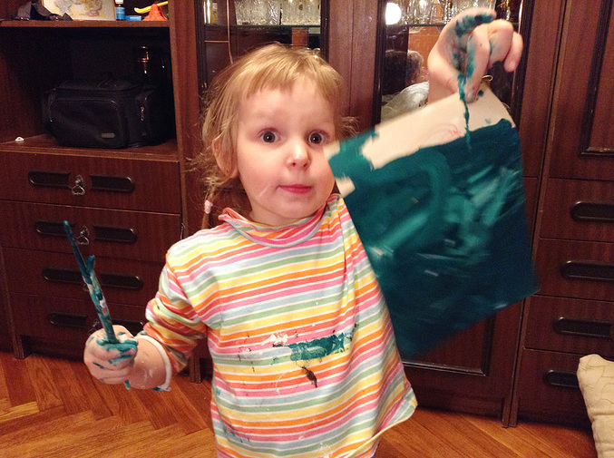 А это фотка моей художницы) как начнет рисовать, так я не успеваю все вытирать и стирать..