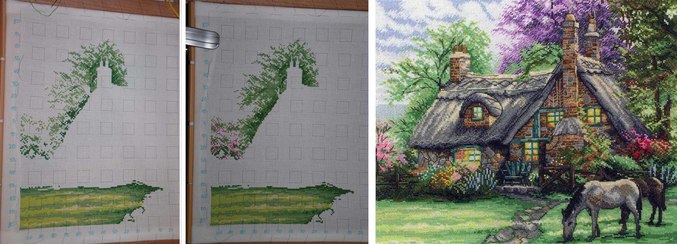 вышилось, если я правильно посчитала, чуть больше 1000 крестиков) ударно для меня потрудилась эту недельку. Начинают появляться яркие цвета)