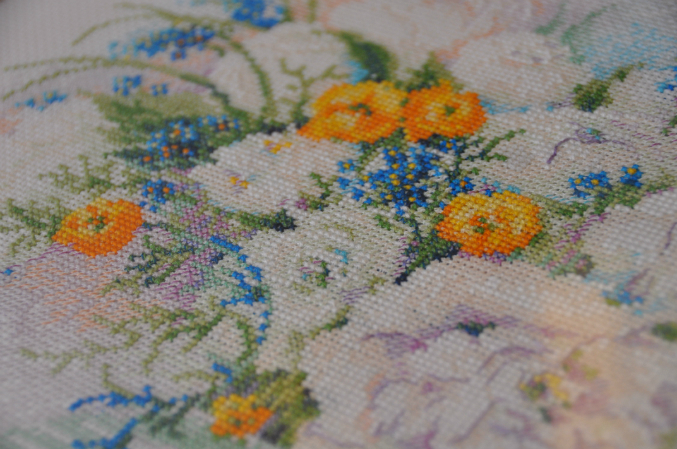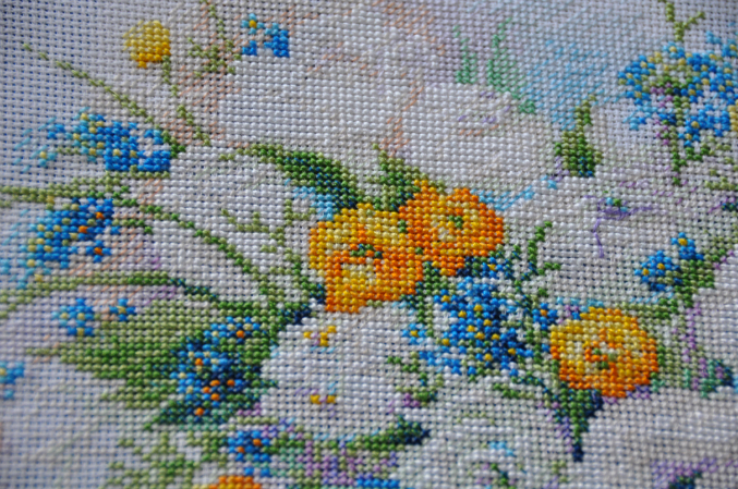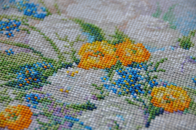 Вот действительно, не видела смысла шить в полукрест тремя тонами едва отличимыми друг от друга. на вышивке это вообще не заметно.Хорошо, что я одну картину из этой серии купила))) я бы не выдержала таких мучений дальше....