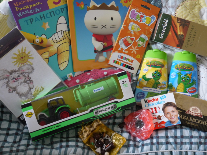 Феечка наша, отзовись! Спасибо тебе огромное!! Шоколадки уже доели, раскраски раскрасили, шампунем еще не пользовались - воды нет горячей. Спасибо большущее, все очень понравилось! И машина тоже!!!