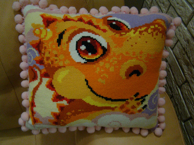 у меня сестрёнка такую вышивала и в итоге без помпонов оставила - тоже симпатично (она шнур вставила по краю)
