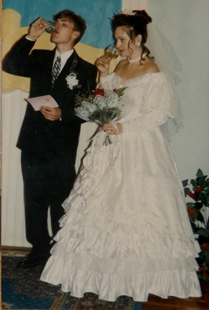 )))))А я вообще все вытворяю не в соответствии с общепринятыми правилами, как навытворяю - хоть стой, хоть падай! Всю жизнь мечтала быть ученой теткой аля Кусто и без семьи))))) Ученой стала, теткой не получилось, в попе до сих пор пластилин и иногда ученики мне случайно тыкают)))))))) А зарабатывала долгое время шитьем и повязалками. Научилась всему сама, но шиворот-навыворот. Чичас,раз такой расклад, попробую перефотать свадебную фотку, я на нем в платье, которое за три дня наварнякала)))))