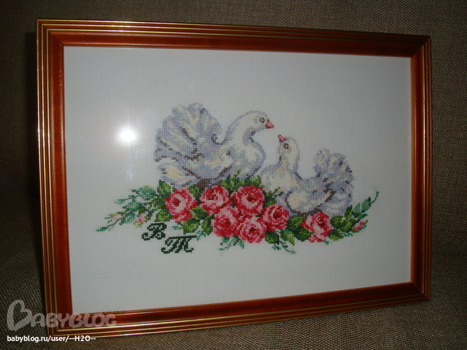 мне кажется, что рамка немного мрачновата для этой вышивки.. но работа аккуратненькая, Вы молодец!)