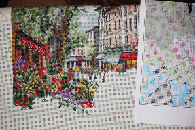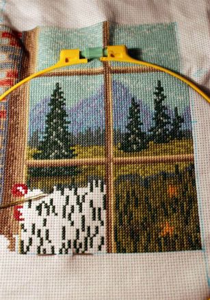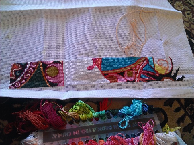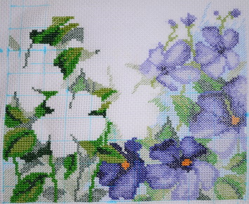 Нывышивалось все по плану закончила верхний левый угол и даже приступила к низу было