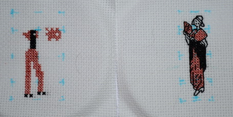 Доброго времени суток, девочки!Я вышла на работу и поэтому вышилось совсем немножко, устаю и сил на вышивку практически не остается. Вышилось справа, крестики в 1нить и полукрестики тоже в 1 нить. наконец-то смыла неаккуратную разметку, как стыдно было ее показывать
