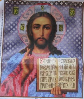 Еще начала вышивать икону спасителя ювелирным бисером: