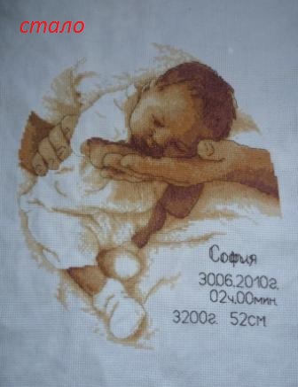 вышивать не возможно...а мне еще одну метрику надо на заказ к 1 июля...Сегодня конечно взяла иголку в руку и сделала усилие над собой чтоб закончить бэк на моем малыше))) без бэка он мне кстати больше нравился