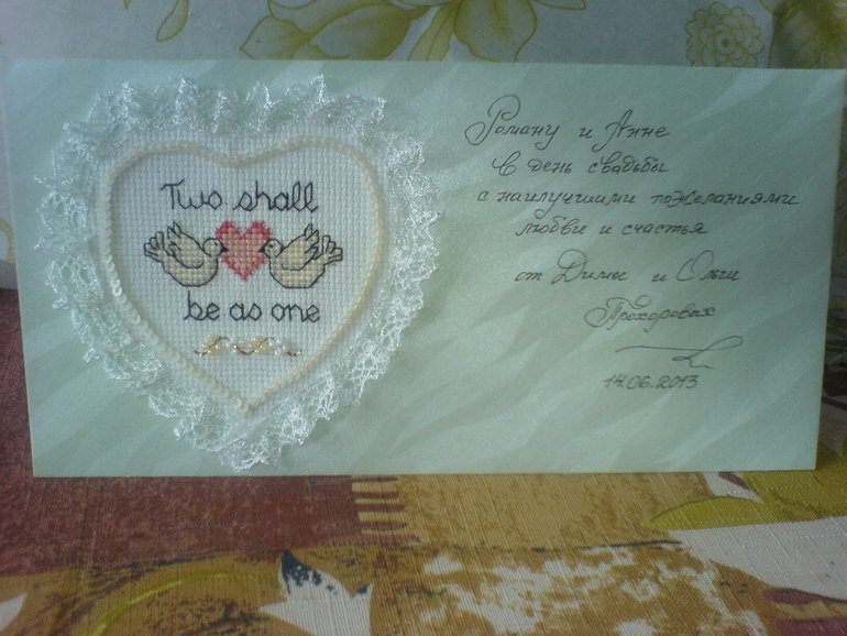 Вот такой конвертик на свадьбу получился у меня за два вечера. Молодым понравился, что очень мне приятно!