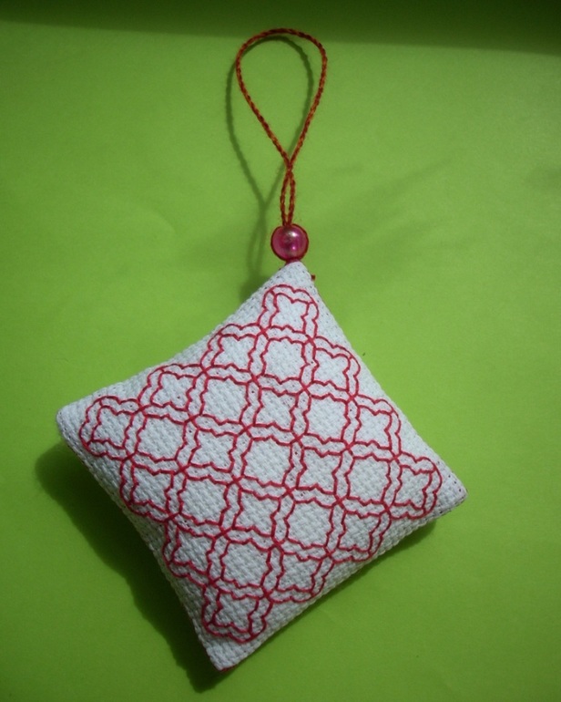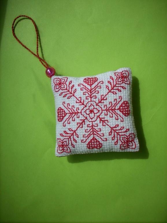 Это у вас равномерка? Какой каунт? И подушечка просто милейшая! Я бы ей только бусинку поменяла, эта розовой кажется, но может из-за солнца просто))